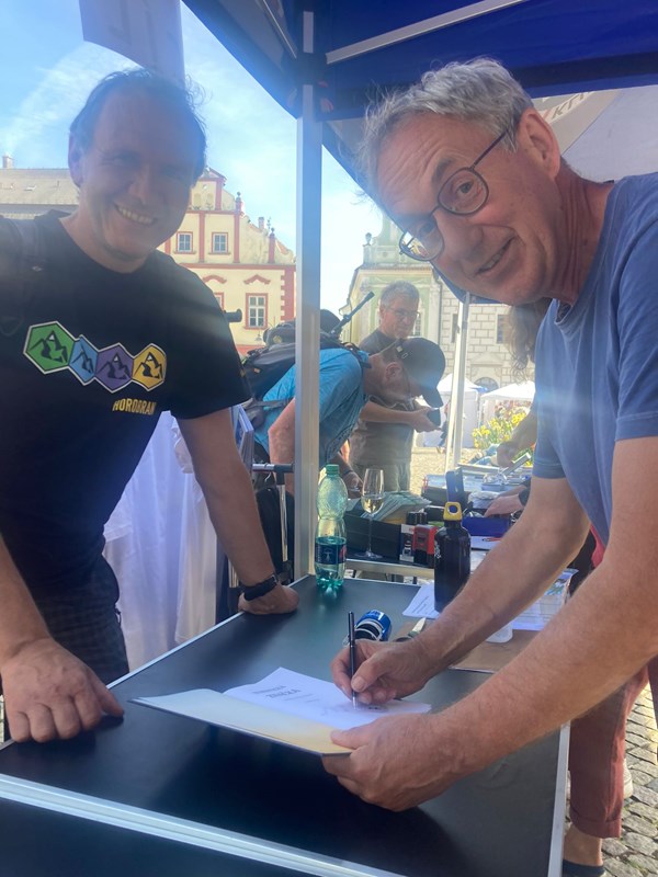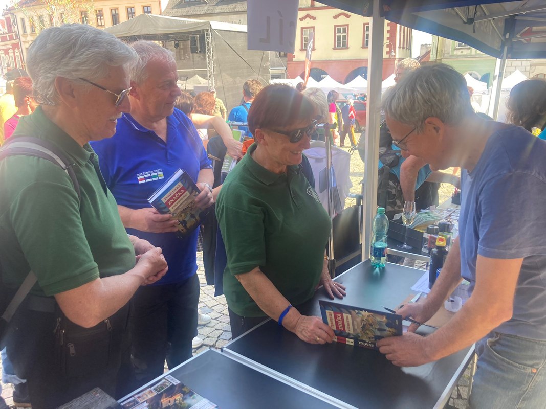 V Táboře se konaly velkolepé oslavy 135 let od vyznačení první trasy Klubu českých turistů a bylo to velké! Na náměstí byl stánek KČT, autor knihy Marek Šálek podepisoval jak ďas a dokonce dostal jako dárek od KČT sadu na vlastní značení. Knihu jsme řádně pokřtili a popřáli jí mnoho štěstí.