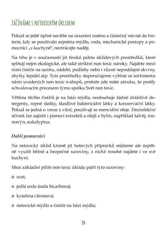 Samozřejmě to není tak úplně pohodlné a autorky této knihy z organizace Svět non toxic, si to velmi dobře uvědomují. Nabízejí proto jak úvod do prvních krůčků netoxického životního stylu pro ty, kteří s non toxic teprve začínají, tak i informace pro „pokročilé“, kteří už netoxicky žijí a rádi by se dozvěděli další užitečné informace.