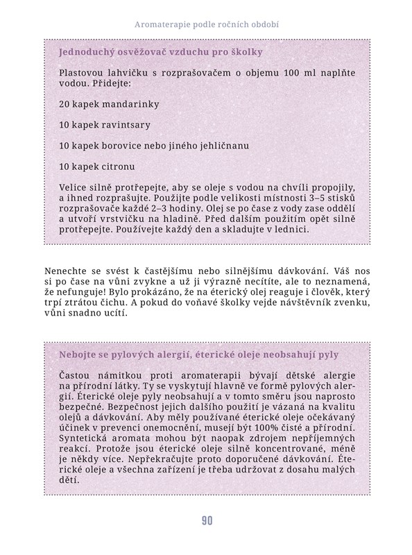 Z tisíce okvětních lístků získáme jednu kapku vzácného oleje. Éterické oleje zachycují něco jedinečného, co zasahuje naše smysly na mnoha úrovních. Harmonizují emoce, posilují intuici a zlepšují zdraví. Éterické oleje ovlivňují tělo i psychiku, a jsou proto velmi účinnými pomocníky v péči o celkové zdraví. Vydejte se na svou voňavou cestu, naučte se, kdy oleje využívat, jak je míchat i podle čeho vybírat.
