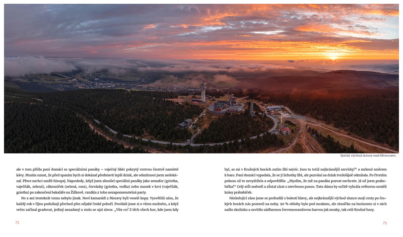 Knížka vás zavede do nejvyšších pater českých hor, odkryje vám nádherné výhledy, nejútulnější horské chatičky i hloubi lesů. Nabídne spoustu tipů na jedno i vícedenní výlety či přechody pohoří v létě a také ukáže možnosti, jak si hory užít v zimě, ať už na sáňkách, běžkách, skialpech, nebo sněžnicích. Kromě toho se v knize dočtete spoustu zajímavostí. Co má člověk dělat, když jej v horách zastihne bouřka? Jak se v Česku řeší problémy s kůrovcem? Nebo jak to bylo s kyselými dešti v Krušných horách? Nebudou chybět ani Jardovy vtipné historky. Zjistíte, jak se (ne)má chodit bez plavek do sauny, na co si dát pozor, když jdete na polské chatě na záchod, nebo kde na horách uspořádat nejlepší rozlučku se svobodou.