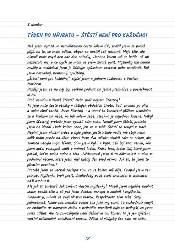 Tato kniha je příběhem o cestě k uzdravení. Je o nezlomné vůli a touze překonat zdravotní problémy způsobené dvěma náhlými mozkovými příhodami a operací srdce. Nabízí pohled do pocitů člověka, který v jednom okamžiku přijde o zdraví, ale i smysl dosavadního života a rozhodne se vydat na cestu za poznáním svých fyzických i mentálních limitů. Příběh 60 dní a 2133 kilometrů putování Stezkou Českem po hranici České republiky zásadně změní jeho vnímání reality a celkový pohled na život. Kniha popisuje zážitky z chůze, setkávání s inspirativními lidmi, vyrovnávání se s bolestmi těla, ale i historky z každodenního putování. Obsahuje také praktické tipy a postřehy začínajícího dálkového chodce.