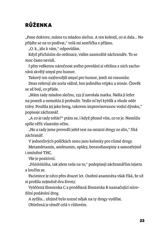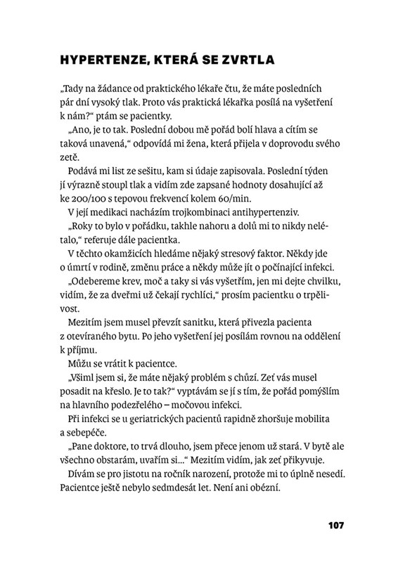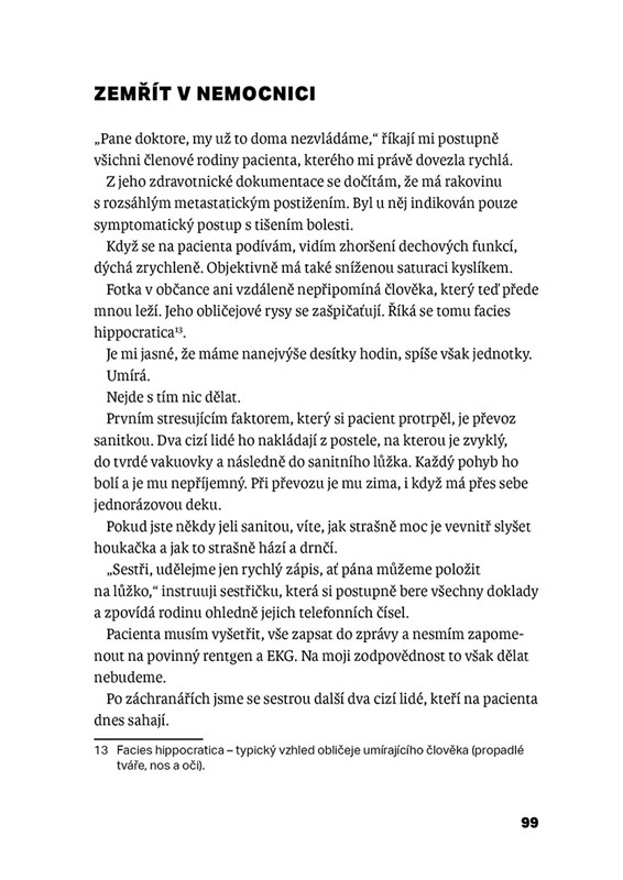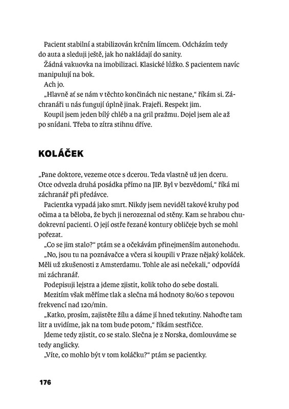 …jednou přiveze sanitka právníka s bolestí na hrudi, jindy dorazí žena s mrtvicí, vystrašený hypochondr, alkoholička s deliriem, zdrogovaný bezdomovec nebo mladík s těžkým zápalem plic. Tady se nehraje na společenský status – jde totiž o čas, přesnou diagnózu a trochu štěstí. Internista Jan Richter popisuje, co se děje ve chvílích, kdy může jít o život. Jeho příběhy z lékařské praxe jsou syrové, poučné, dojemné i úsměvné. Kniha je psaná srozumitelně a svižně, a je rozčleněná do krátkých kapitol pro snadné čtení i pro ty, co mají málo času.