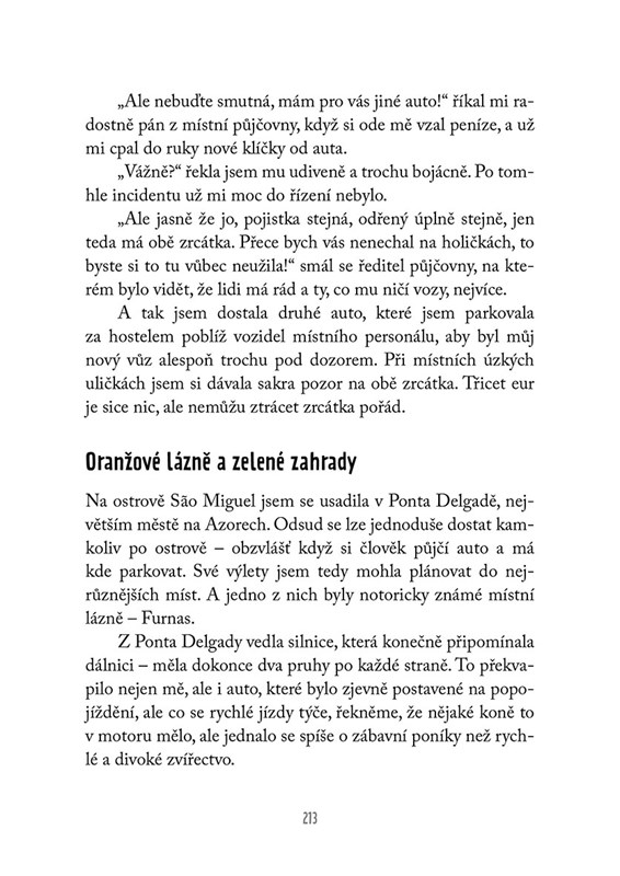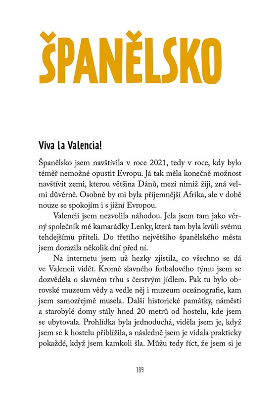 Tato knížka není klasickým cestopisem. Mám za to, že je psát ani neumím. Ale umím popsat, co jsem zažila a proč mi to přijde zvláštní, srandovní, zajímavé či chytré… Nejde mi o objektivní popisy a hodnocení, jsou to jen moje osobní cesty. A já cestuji kvůli zážitkům. Myslím, že informace o historii nebo o tom, které restaurace jsou lepší než jiné či jak je co drahé, se dnes dají snadno najít na internetu. Místa si ale musí každý prožít na vlastní kůži. O to se snažím a kousky toho bych ráda předala dál. Věřím, že některé z mých zážitků pro vás mohou být inspirací, kuriozitou nebo varováním. A rozhodně doufám, že si tuto knihu užijete.